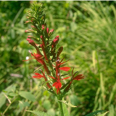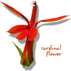 "cardinal flower" refers to the scarlet robes worn by the cardinals of the Roman Catholic Church. I was only able to find it at Bowman's Wildflower Farm (a nature preserve).
