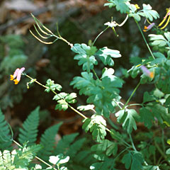Corydalis sempervirens (Papveraceae) - Also known as "Pink Corydalis", it is a member of the Poppy family and relative of "Bleeding-Heart". It blooms in summer. (Photographed in PA)
