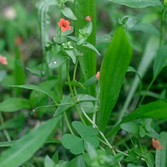 This tiny flower gained fame as the emblem of the hero in the novel "The Scarlet Pimpernel" by Baroness Orczy. It is also known as "poor man's weather glass" due to