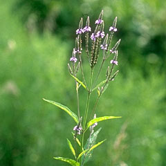 Verbena hastata (Verbenaceae) -- This plant has several medicinal uses, and is still listed in modern herbals. Vervain blooms in late summer. (Photographed in PA)
