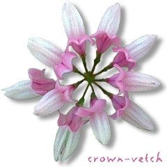 Coronilla varia (Leguminosae) - Also called "Axseed", it is related to the legumes and clovers. Blooms in summer. (Photographed in WI)