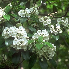 Kalmia latifolia (Ericaceae) - This evergreen shrub is the state flower of both Connecticut and Pennsylvania, and blooms in late spring to early summer. (Photographed in PA)