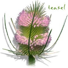 Dipsacus sylvestris (Dipsacaceae) - Teasel gets its name from the former use of its dried flower heads to "tease" yarn and fabric. This alien import blooms in late summer to early fall. (Photographed in PA)